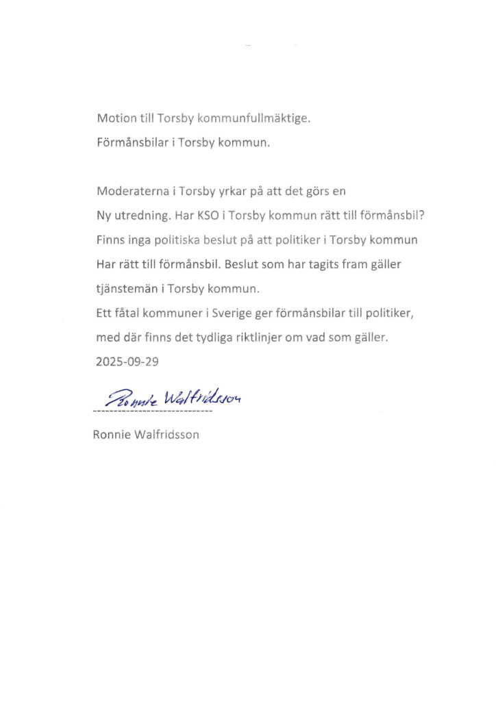Moderaterna i Torsby kommun kräver tydligare riktlinjer angående förmånsbilar till kommunens politiker. Ett fåtal kommuner i Sverige ger förmånsbilar till politiker, och i de fall det förekommer finns tydliga riktlinjer om vad som gäller. Läs motionen i sin helhet här nedan.